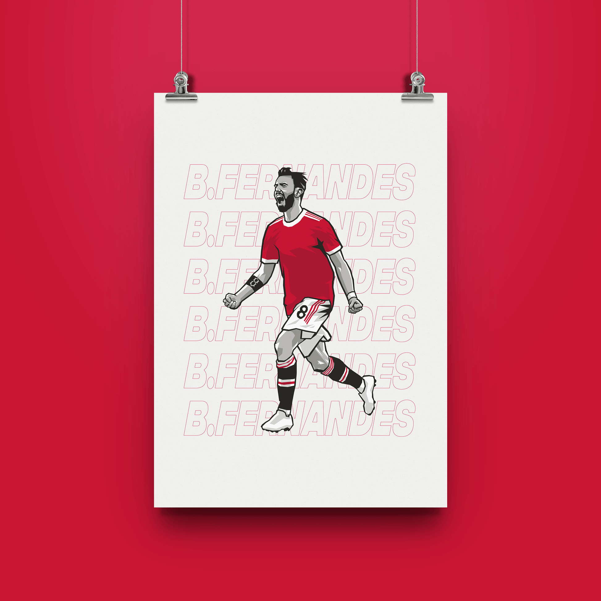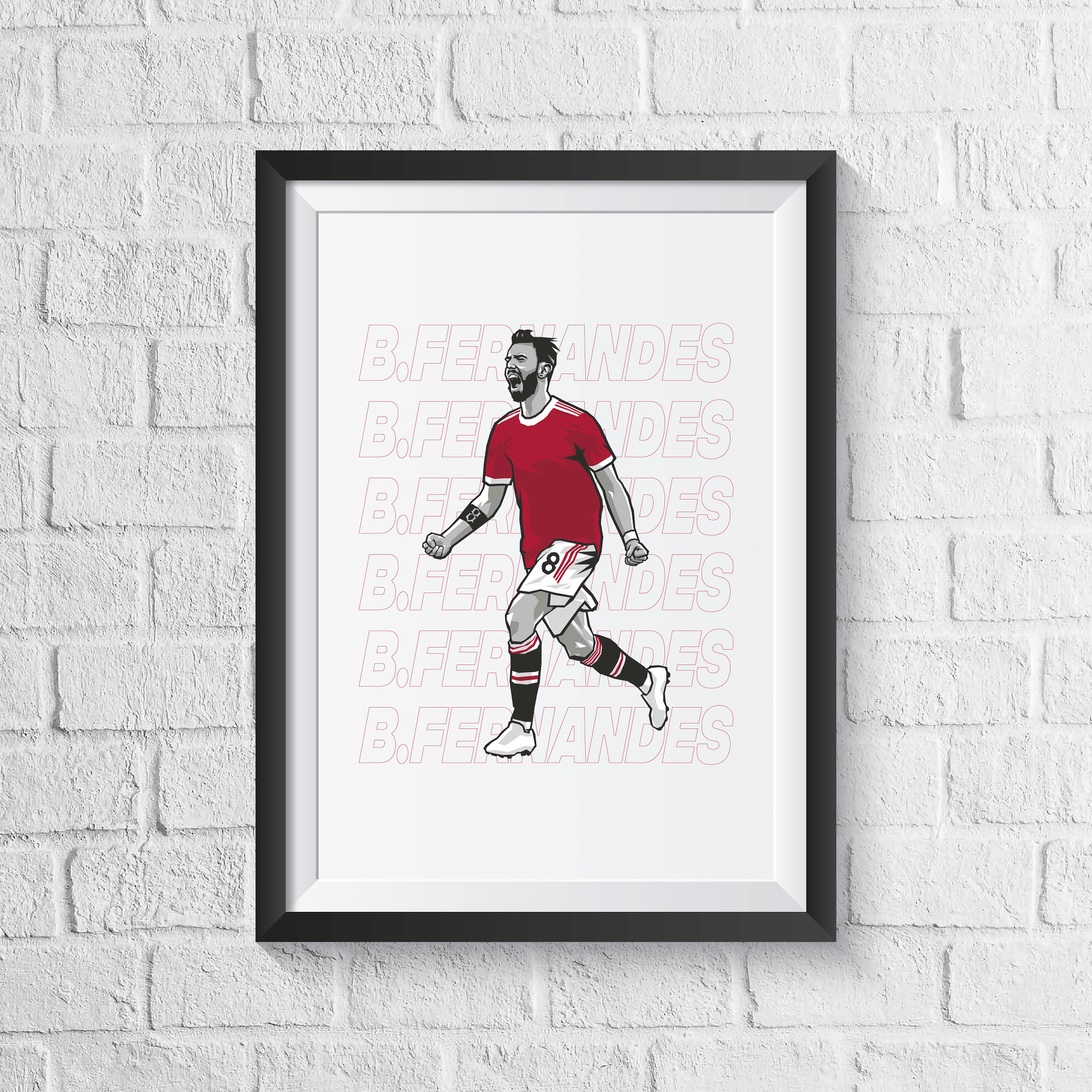 Impresión del favorito de los fanáticos del Manchester United, Bruno Fernandes. Bruno se ha convertido rápidamente en un héroe para los fieles de Old Trafford después de una serie de brillantes actuaciones en el mediocampo y más de 50 goles con la camiseta del United. El regalo perfecto para cualquier aficionado al Manchester United.