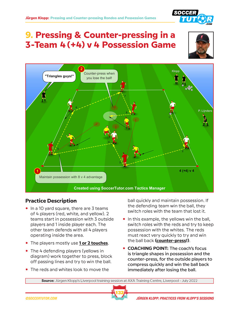 Learn, and apply Jürgen Klopp’s exact training methods direct from his Liverpool training sessions, so your team can reproduce his highly successful all-action pressing and attacking style of play.