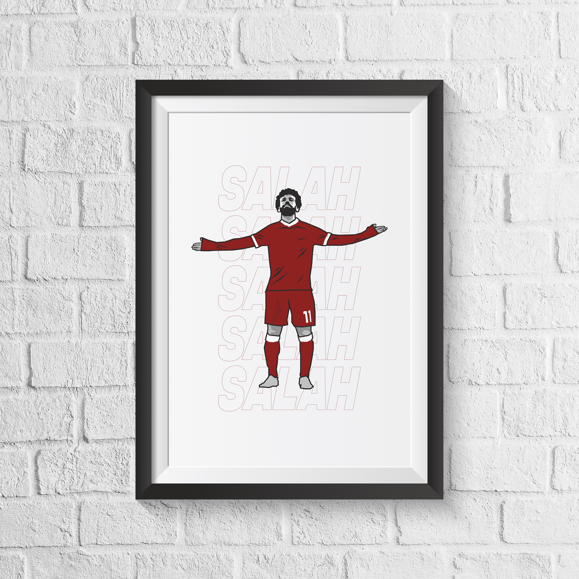 Print of Liverpool goal machine, Mo Salah. The Egyptian forward is a fans favourite at Anfield, consistently topping the scoring charts. The perfect gift for any Liverpool fan.