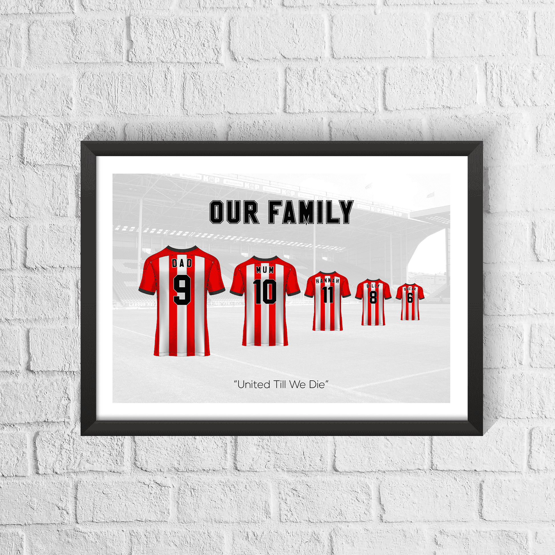 Personalised Sheffield Red Stripes Family Print